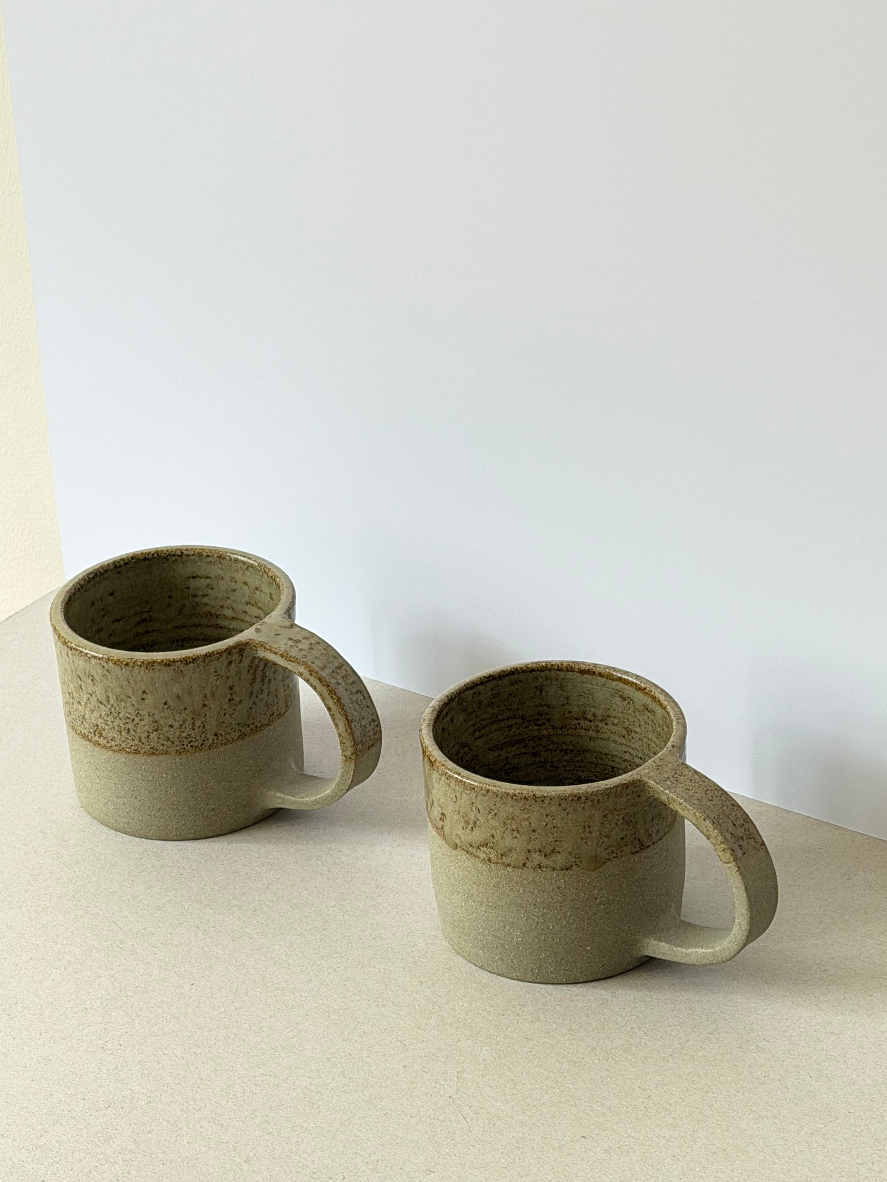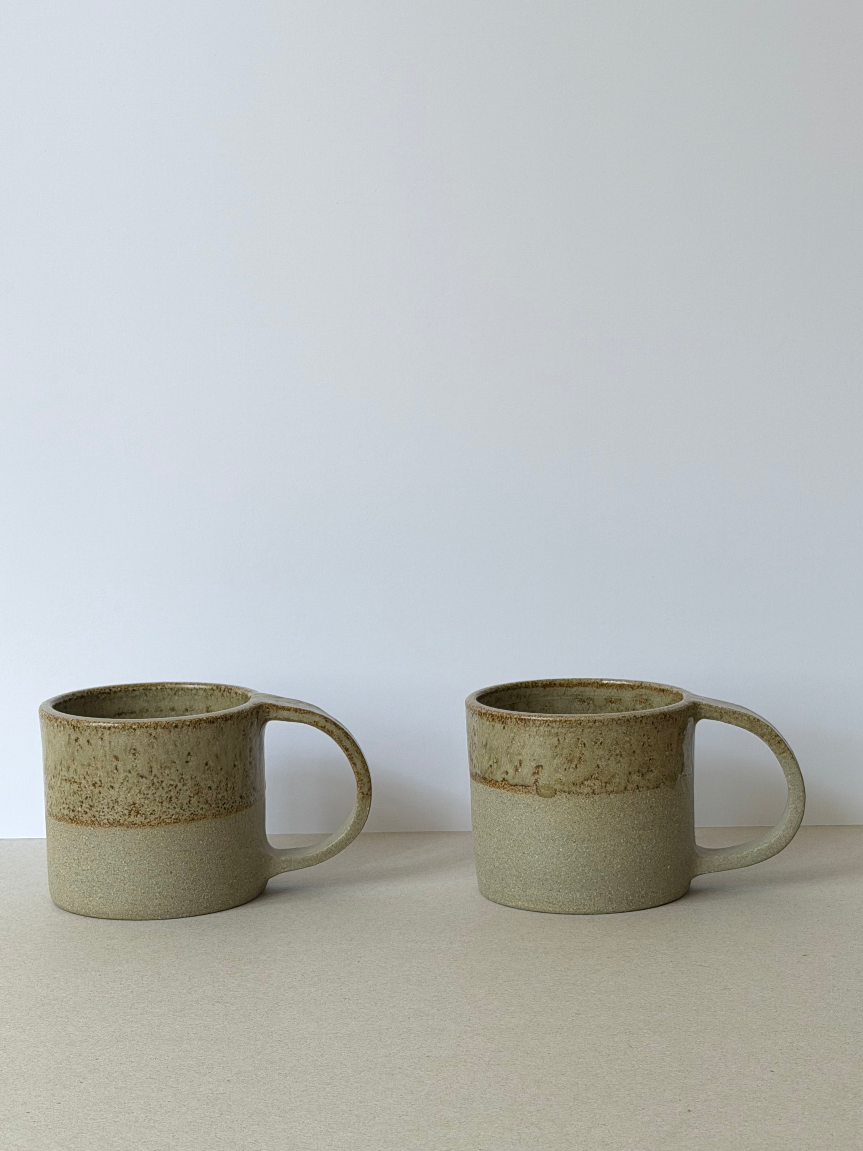 A wheel-thrown stoneware mug designed for quiet moments and everyday use. Its clean lines and generous handle make it both practical and comfortable to hold. The glaze breaks softly over the clay body, revealing subtle variations that make each piece one of a kind.