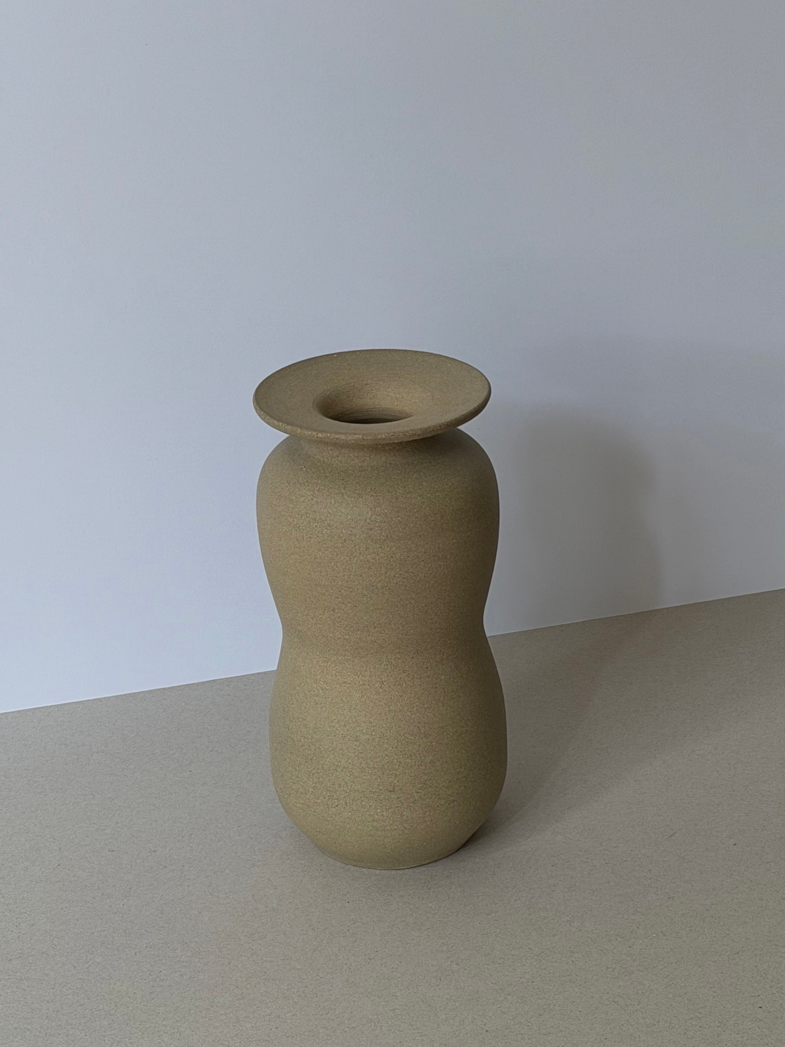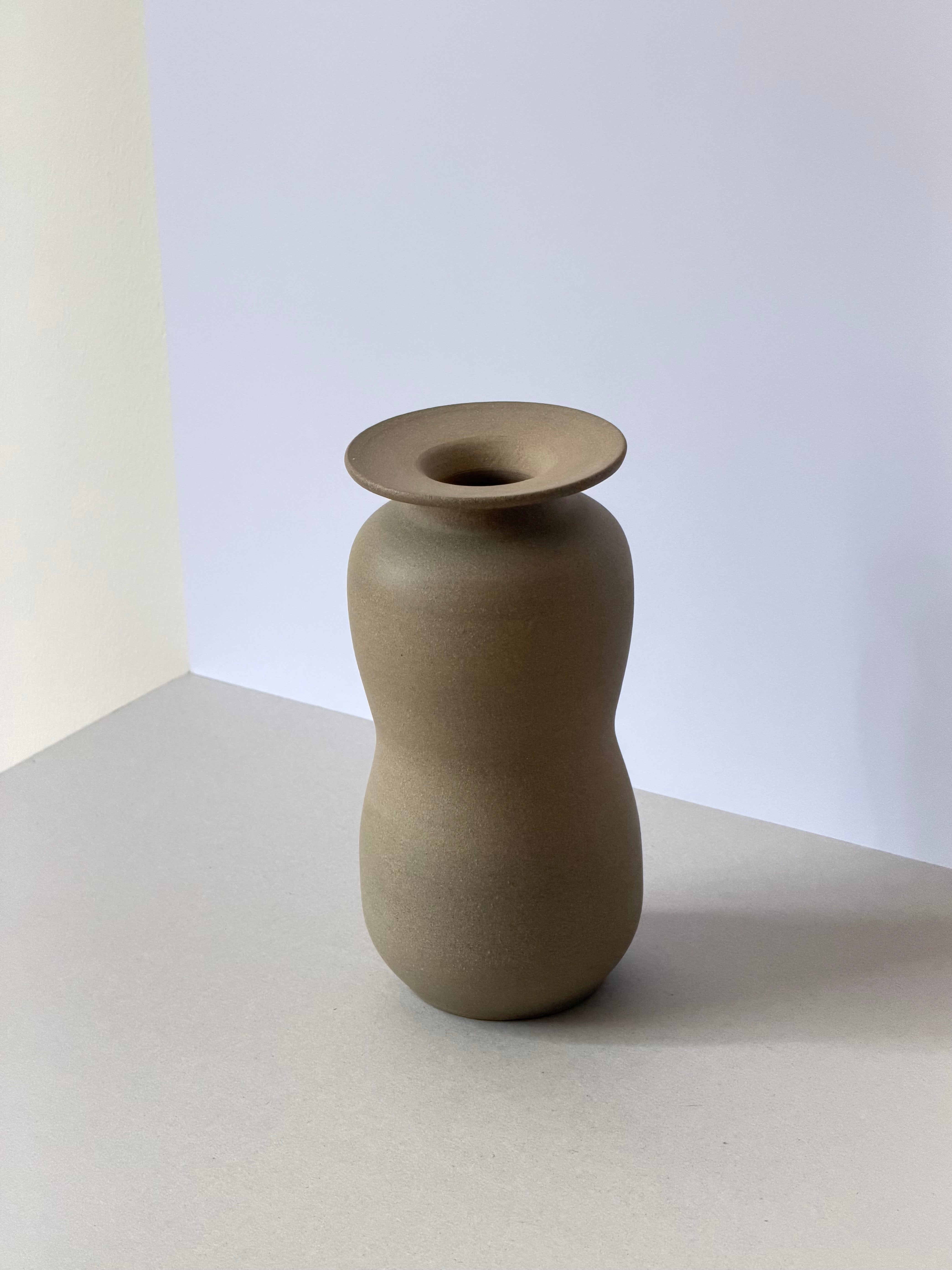 Elegant in form and grounded in texture, this hand-thrown vessel embodies quiet restraint and balance. Crafted from regional Victorian stoneware clay and fired to cone 8, it reveals a subtle interplay of curves that invite both shadow and touch. The surface remains unglazed to honor the clay’s natural hue and tactile honesty, sealed only to ensure lasting durability. Standing tall yet understated, this piece holds space with a calm confidence - a celebration of earthy material and refined simplicity.