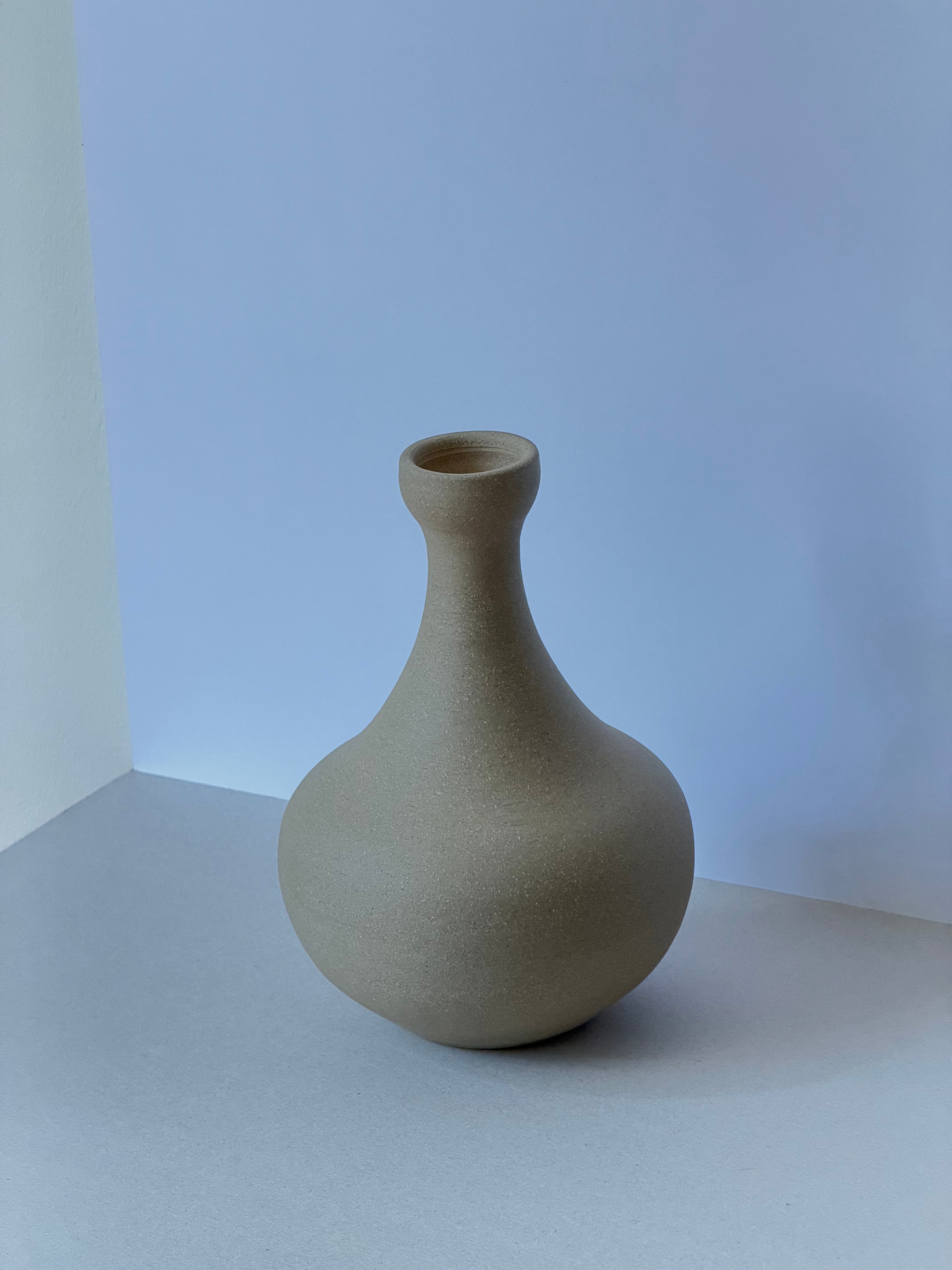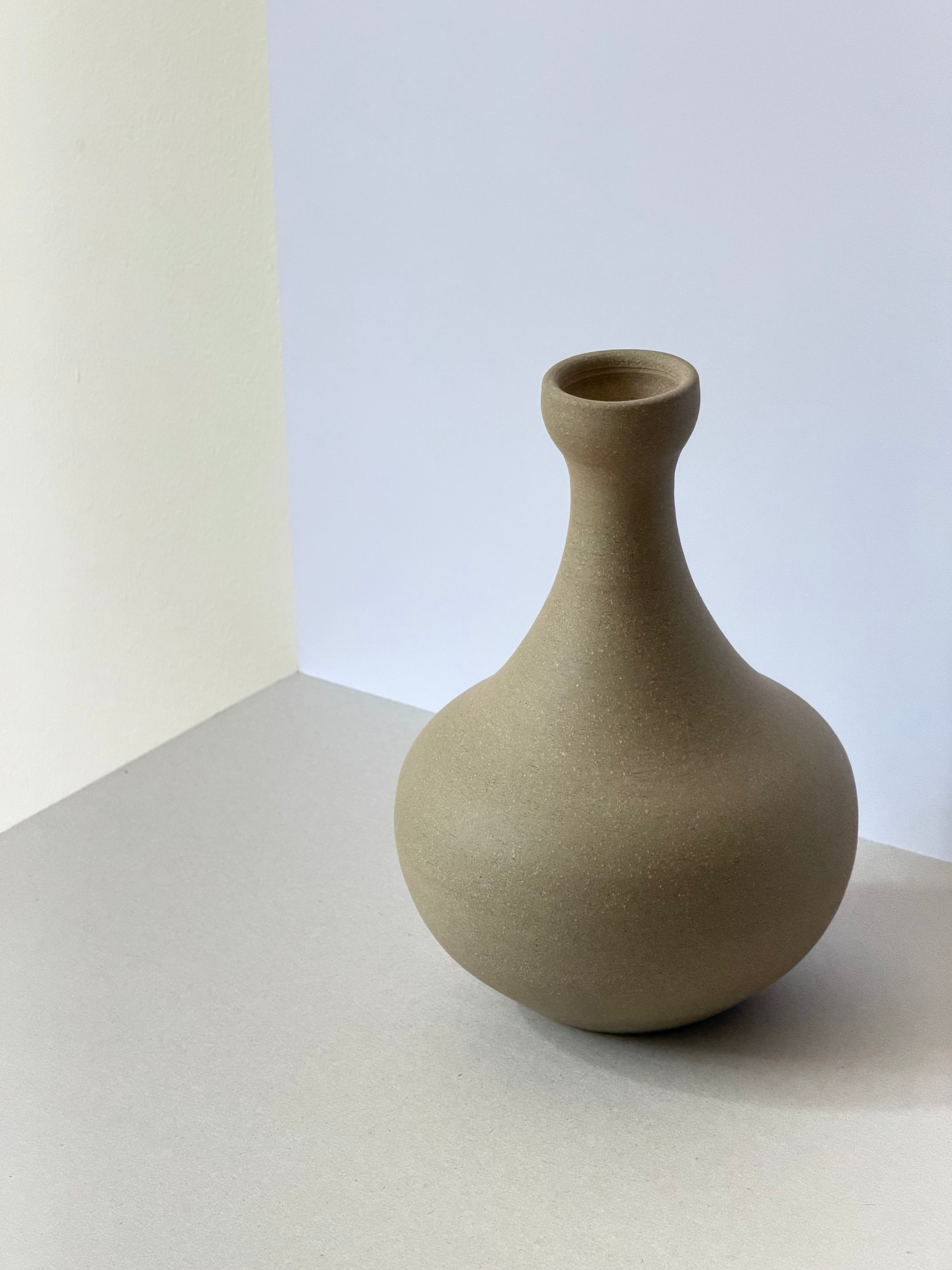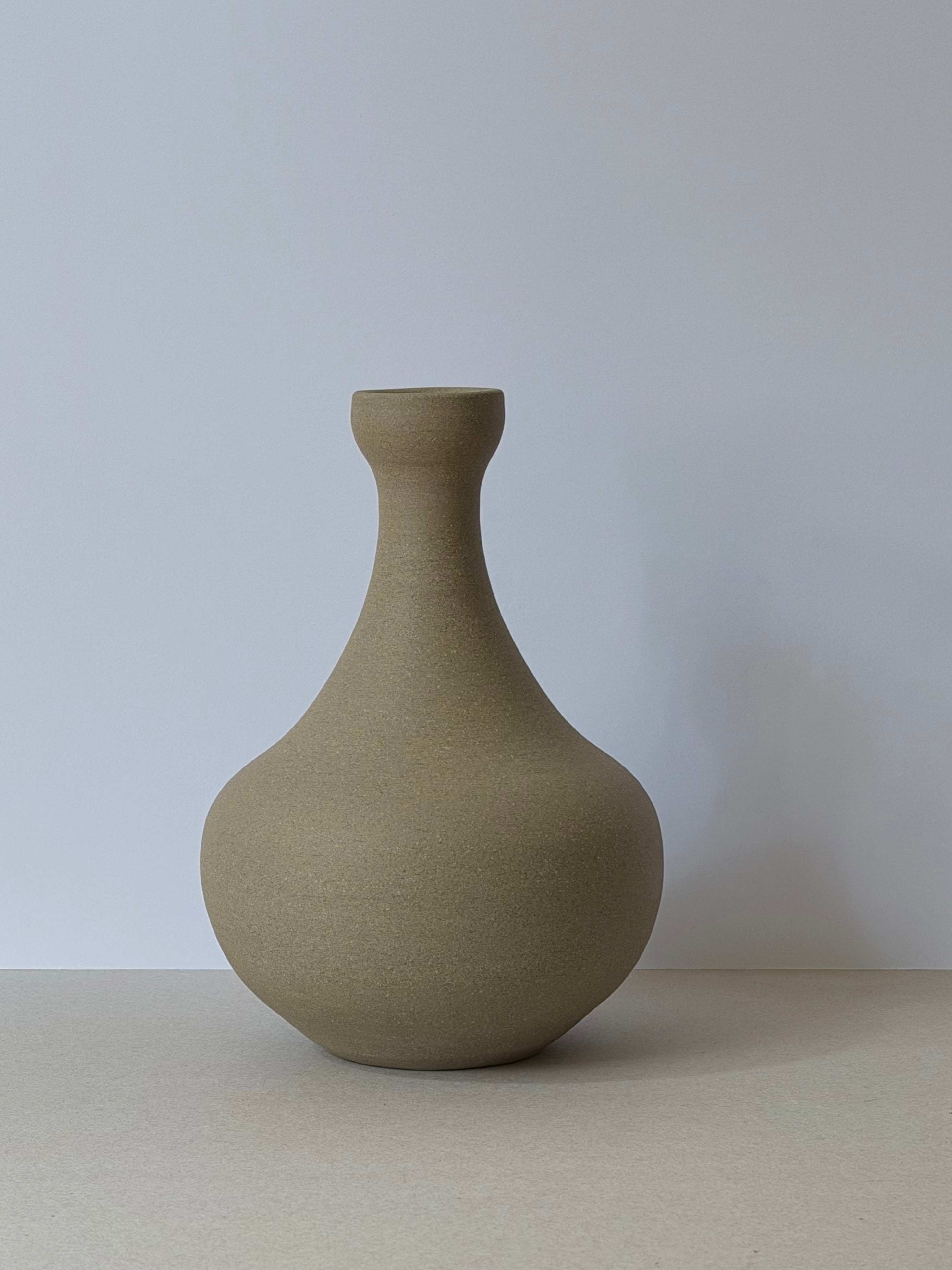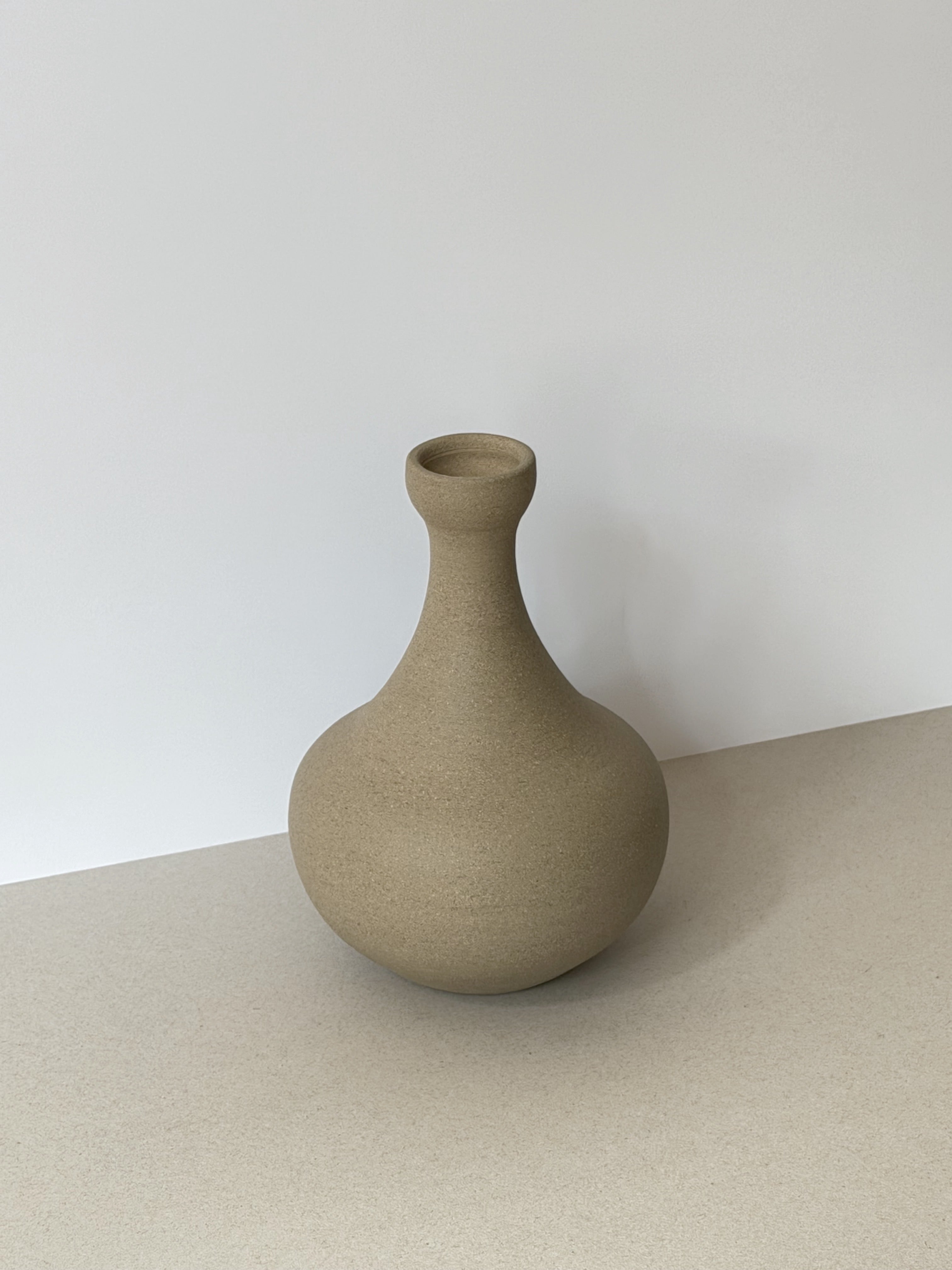 With a graceful silhouette that swells gently from base to neck, this vessel draws quiet inspiration from ancient water pots of the Middle East - forms once designed to hold and pour life’s most essential element. Hand-thrown in regional Victorian stoneware and fired to cone 8, it carries both durability and a sense of calm. The unglazed surface reveals the raw tactility of the clay, its muted tone celebrating the simplicity of earth itself. A subtle sealant lends functionality without compromising its natural integrity - a piece that speaks softly of tradition, craft, and the beauty of restraint.