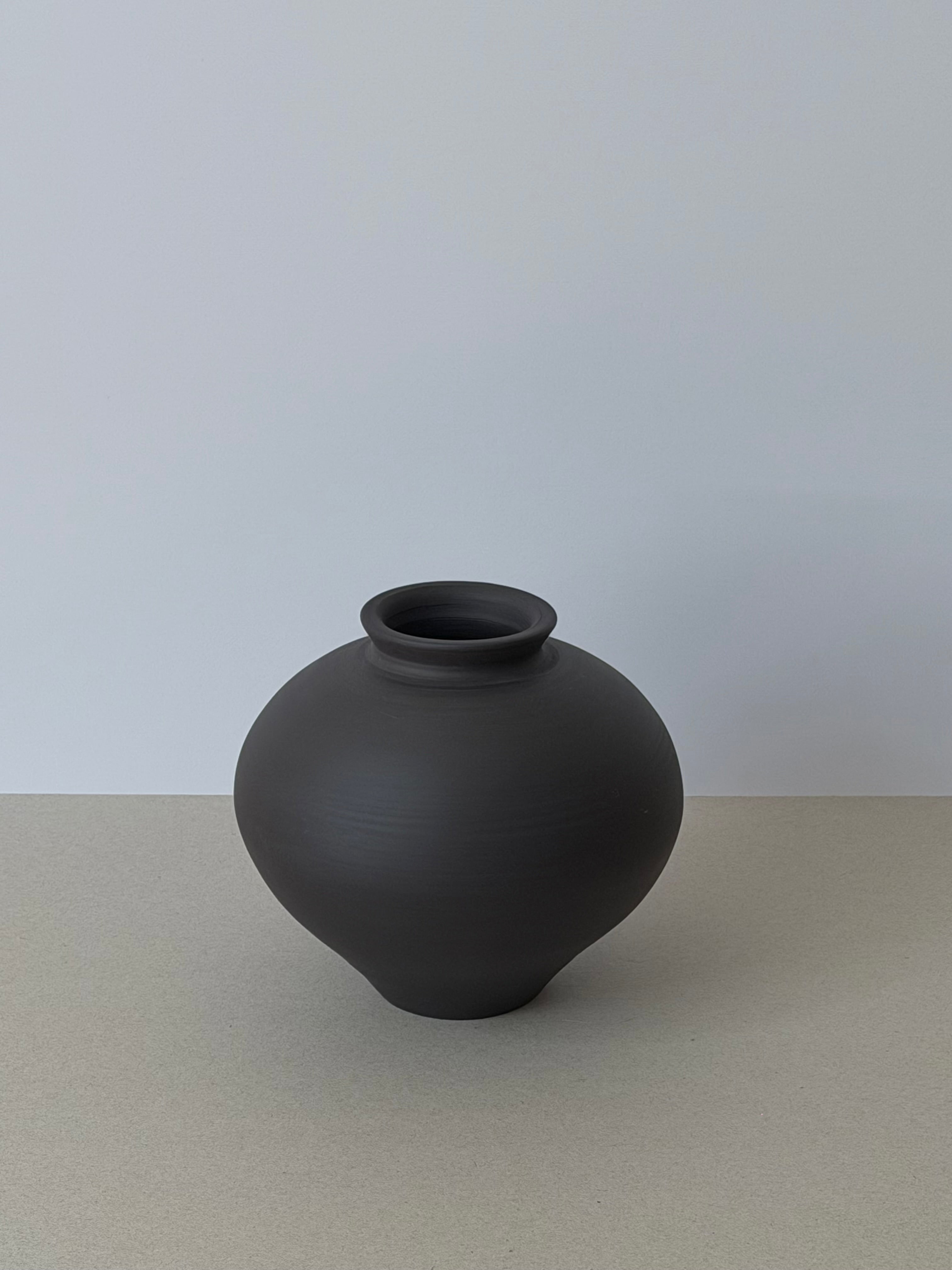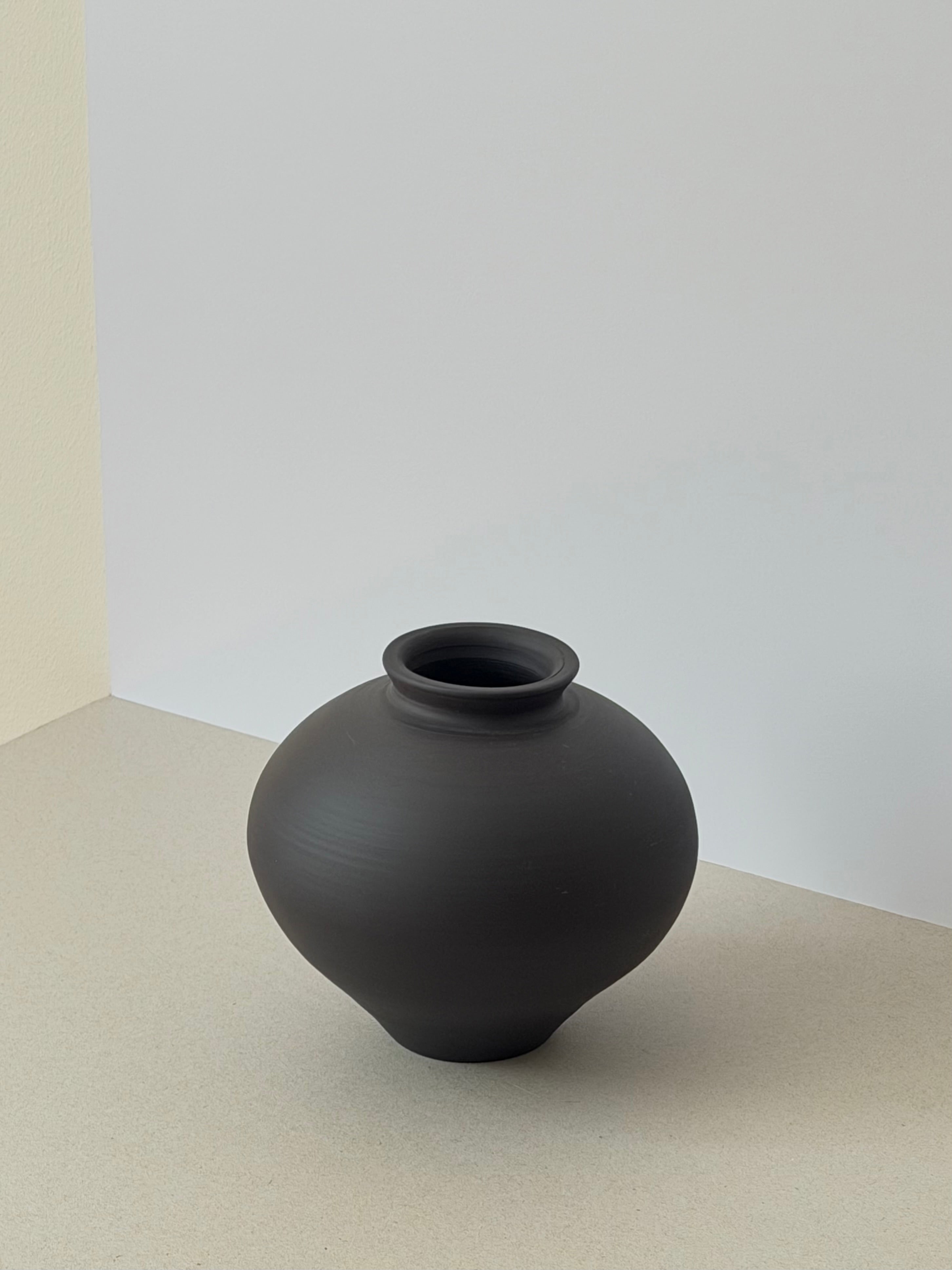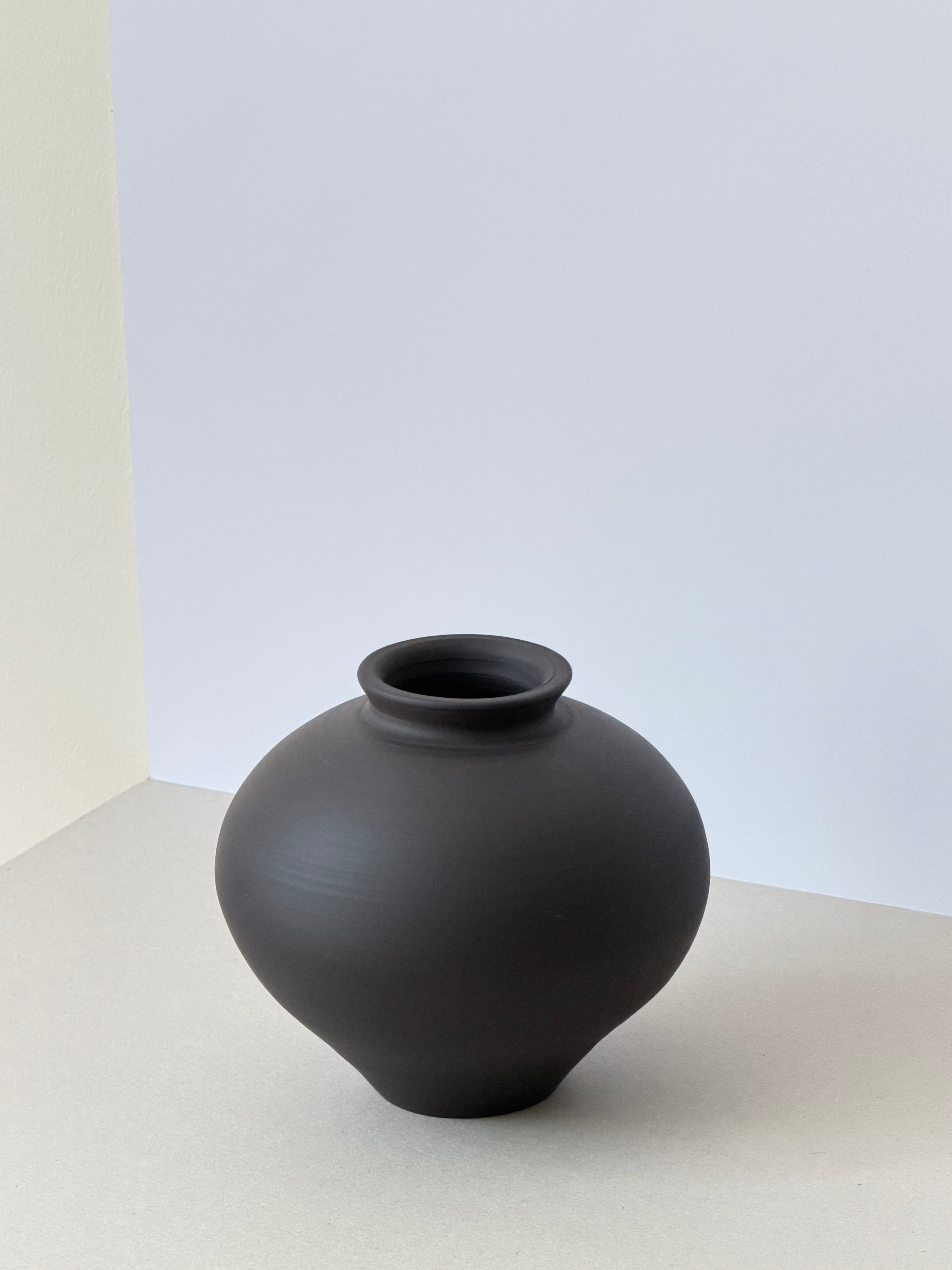 A vessel of stillness and shadow, Spirit Walking feels both grounded and transient. Thrown in dark stoneware and fired to cone 8, its surface absorbs the light like charcoal, revealing subtle traces of the hand and wheel beneath. The gentle swell of the body and quiet narrowing of the rim evoke a calm sense of breath - expansion and release. Guided by Japanese philosophy yūgen, the piece honors the unseen: the space within, the silence between, and the quiet rhythm of impermanence. Spirit Walking is a meditation in clay.