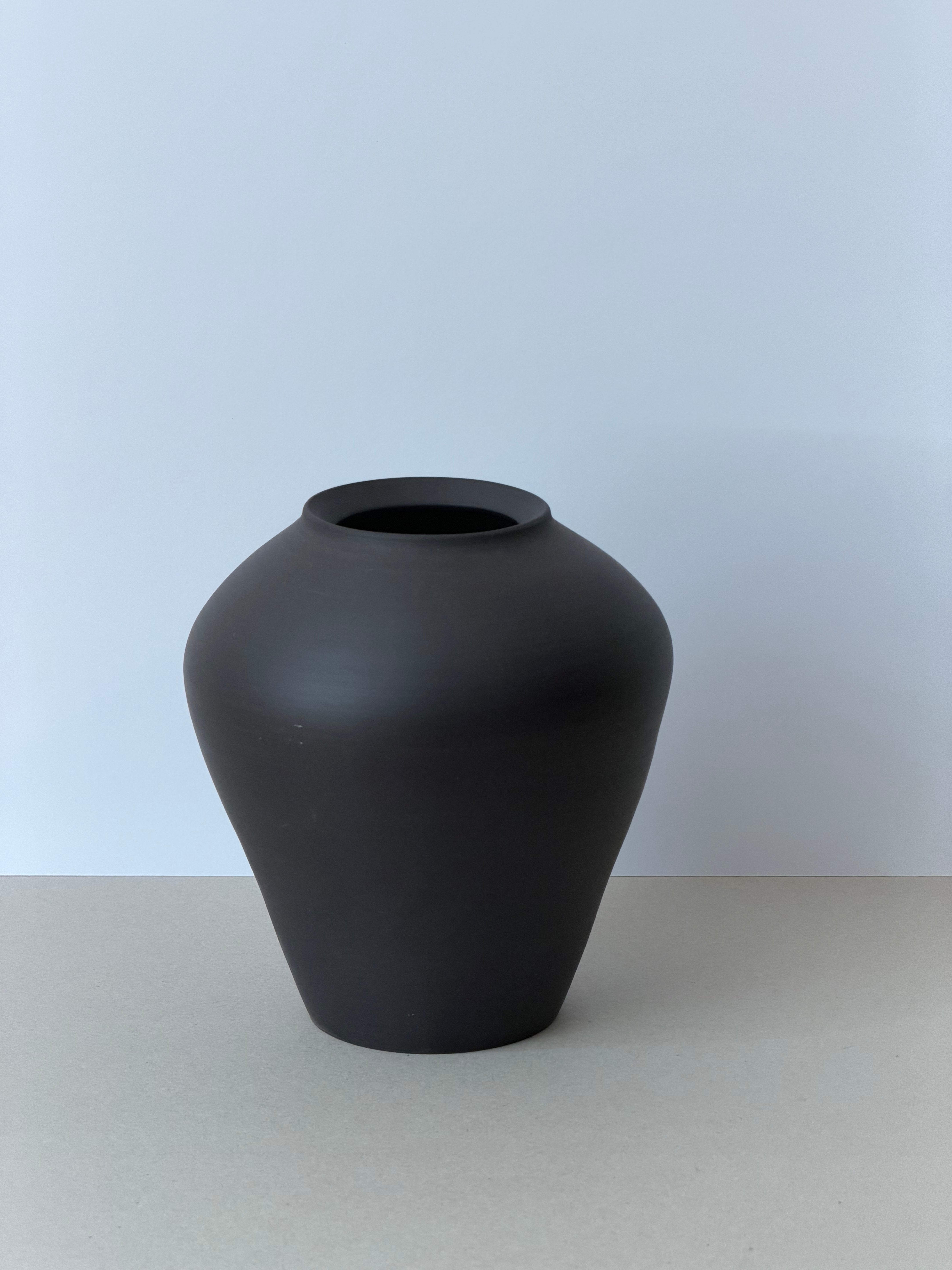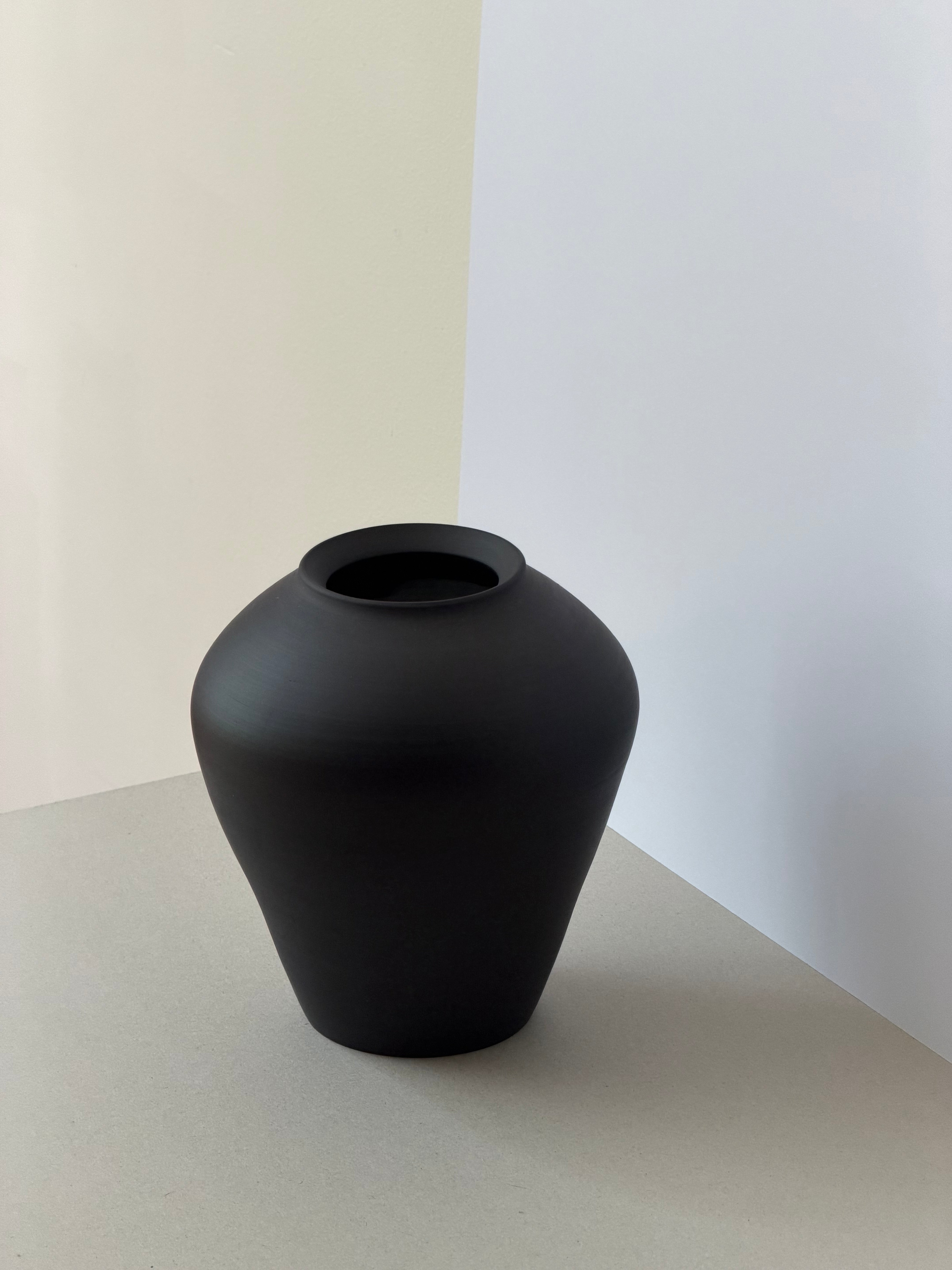 Yin Vessel embodies quiet duality - a balance between darkness and light, stillness and vitality. Its form, softly rounded yet deliberate, expands from a grounded base into a narrow rim, evoking calm precision. The matte black exterior absorbs surrounding light, creating a meditative void, while the white-glazed interior glows gently, suggesting hidden energy and reflection. Together, they create a dialogue of opposites - the seen and the unseen, the exterior restraint and the inner radiance.